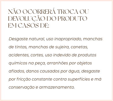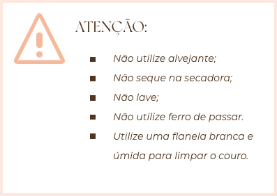 Portanto, assim como todo bom artigo de couro, recomendamos cuidar do bom armazenamento e manutenção do produto.