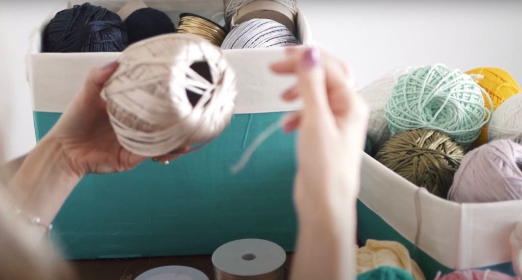 Antes de escolher os melhores fios para tecer crochê, são utilizados diversos fios em uma fase de testes para analisar a maleabilidade, resistência, textura e brilho para cada amostra.